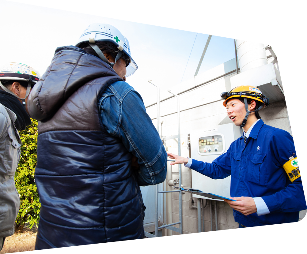 月に1回社内にて安全研修を実施しています。時には外部講師を呼び、安全保護具の使用や熱中症対策など、情報を共有します。