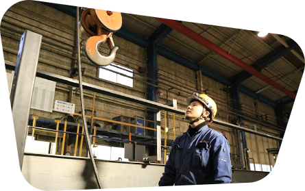 取引先の休憩時間を利用し、工場内の天井クレーンの月例点検を実施 -